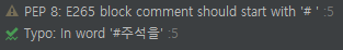 코멘트를 이렇게 달면 weak warning이 하나 발생합니다.