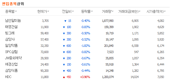 SPC삼립이 일양약품의 시가총액을 넘겼습니다.