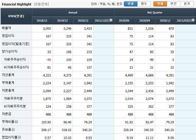 매출액 꾸준히 잘나오고, 코로나때는 오히려 매출액, 영업이익이 증가했구요, 부채비율도 점점 줄여나가는 건전한 모습을 보여주고 있습니다.