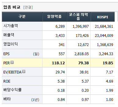 바이오 주식 답게 매우 높은 PER을 보여줍니다. 동종업계 PER도 높네요.