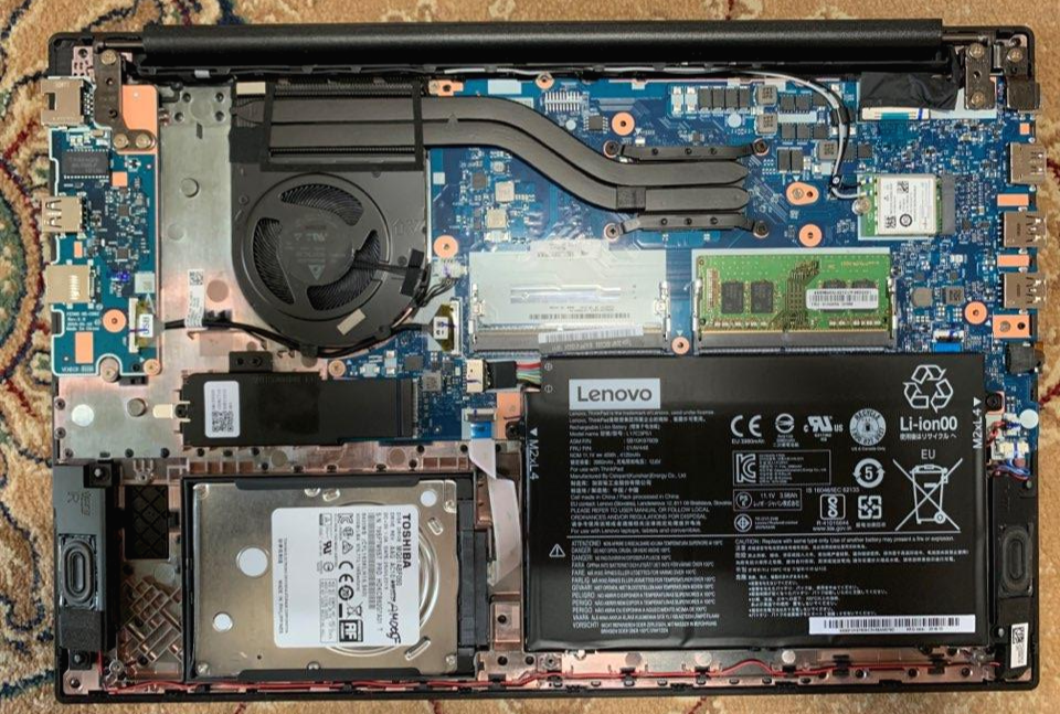 뒷면을 열면 각 부품의 상태를 볼 수 있어요. 외장그래픽이 안들어간만큼, 팬이 1개네요. 그래도 히트파이프가 2개여서 발열에 정말 강합니다. 지금 램 부분 하나가 비어있는데 이 공간이 오늘 채워줄 공간입니다.