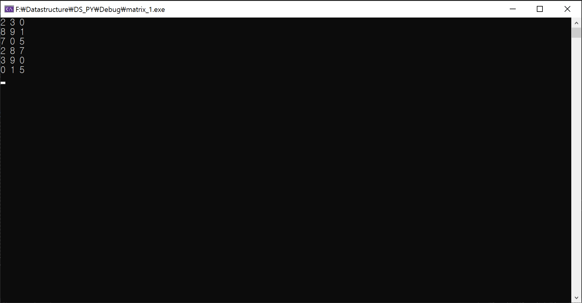 가장 안중요한 코드블럭입니다. 뒤에 나오겠지만 구조체의 멤버가 구조체인 경우 a.data[i].row 와 같은 형태를 볼 수 있습니다.