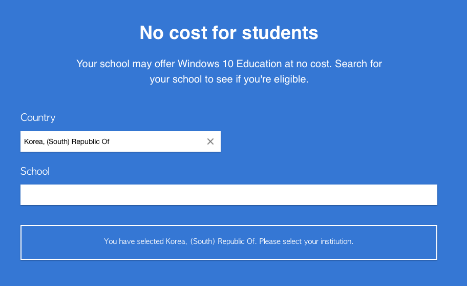 학교이름을 영문으로 쳐서 자동완성된 것을 누르면 Windows10 edu로 업그레이드 할 수 있다.