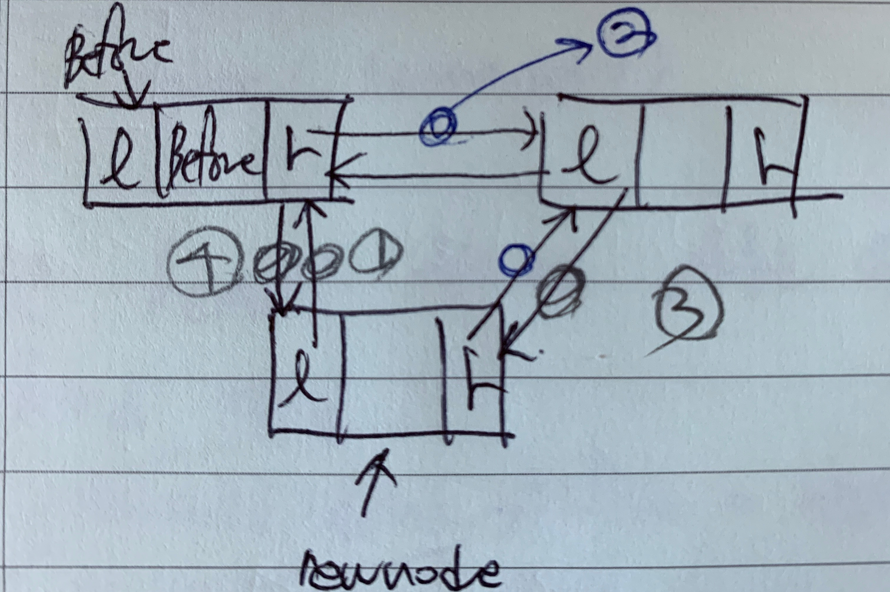 이중연결리스트의 삽입, 삭제에 들어가기 전에 미리 정리해야될 내용이 있습니다.