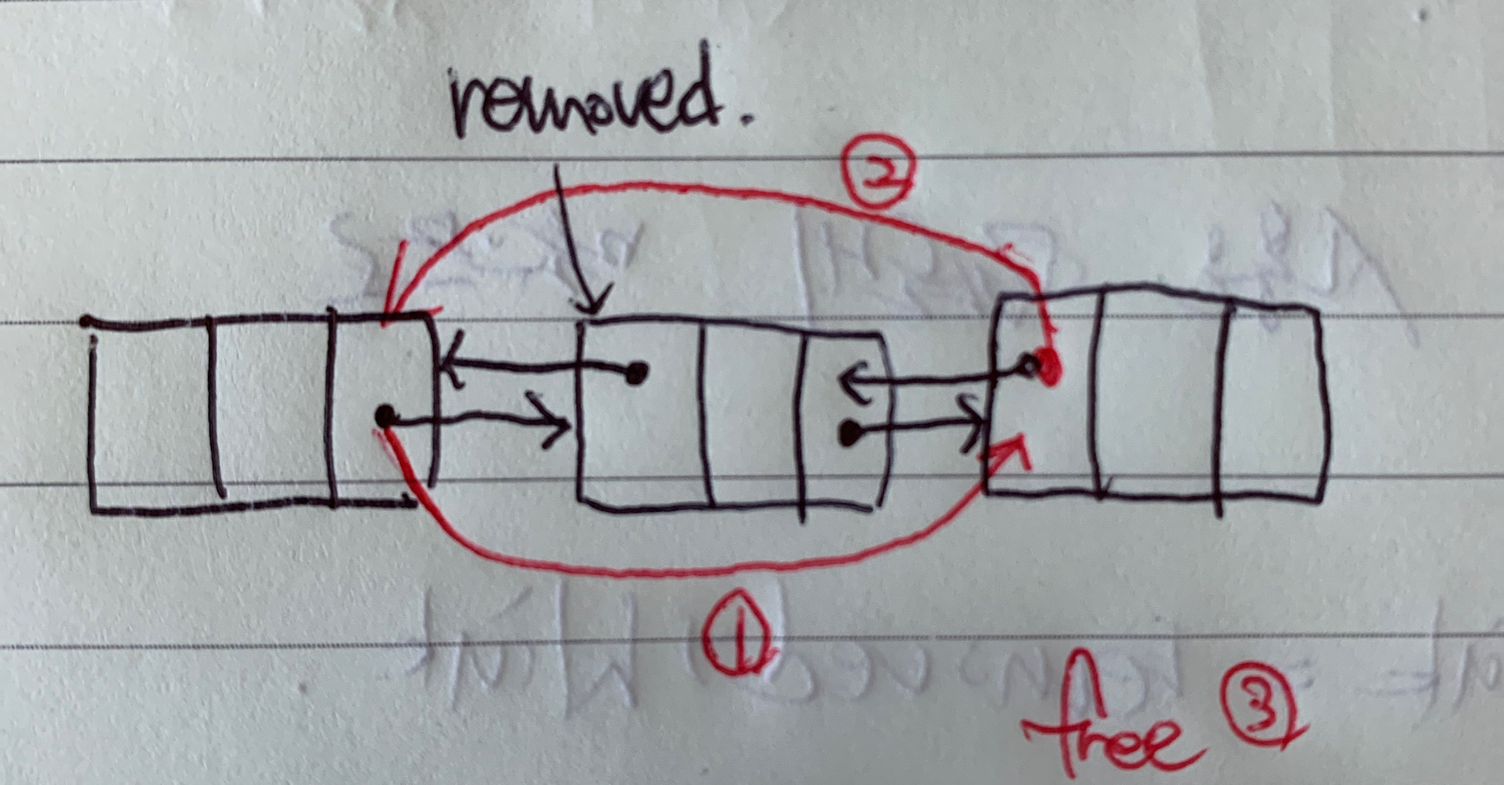 링크의 이동이 끝난 removed노드는 free(removed)를 통해 메모리에서 해제해줍니다.