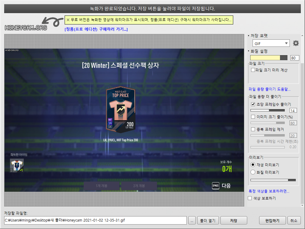 - 꿀캠의 녹화기능을 이용해 동영상 일부를 녹화해서 움짤로 만들기